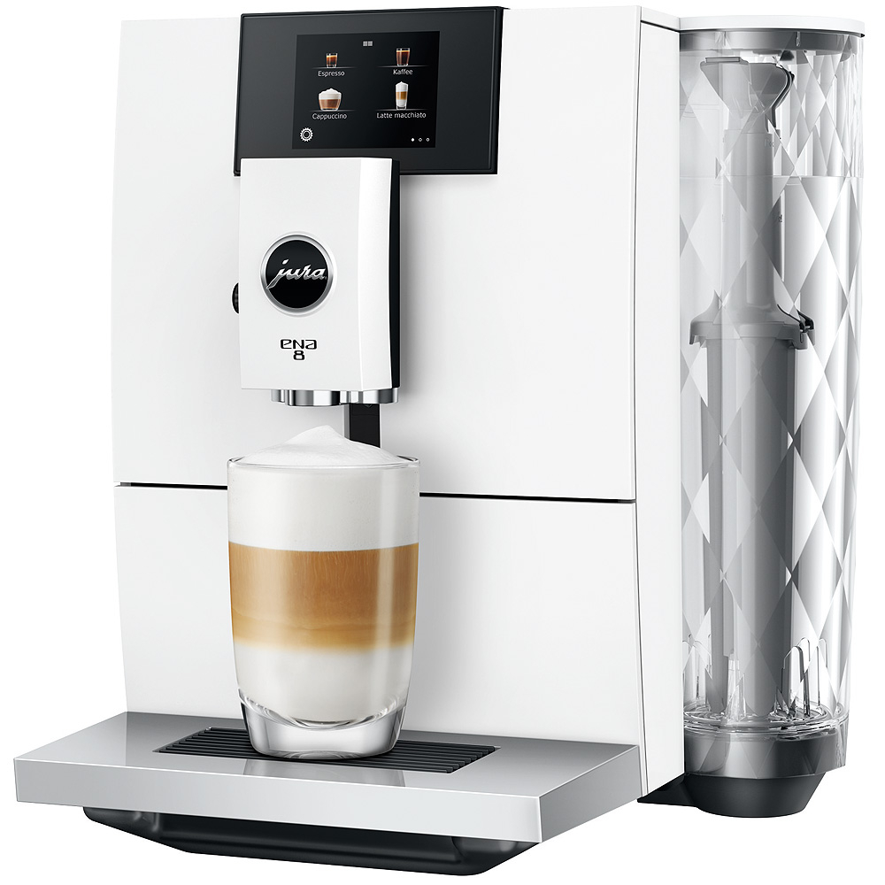 JURA ENA8 Full Nordic White (EC) (15491) Sie w?nschen sich gro?artigen Kaffeegenuss auf kleinstem Raum? In kompaktem Format bietet die ENA 8 mit High-End-Technologien wie dem Professional Aroma Grinder und der Feinschaum-Technologie Kaffee vom Feinsten dank Zweitassenfunktion jetzt auch f?r zwei Tassen gleichzeitig. Mit klaren Linien und edlen Akzenten beeindruckt sie dabei mit gro?em Design im kleinen Format. – Professional Aroma Grinder f?r 12,2% mehr Aroma in der Tasse – Gleichzeitige Zubereitung von zwei Espressi oder Kaffees dank Doppeltassenfunktion – Feinschaum-Technologie f?r luftigen Milchschaum – Kompaktes Premium-Design, das ?berall Platz findet und langfristig Eindruck macht Das Modell JURA ENA 8 (EC) unterscheidet sich zur JURA ENA 8 (EB) in: – Gleichzeitige Zubereitung von zwei Tassen Espressi oder Kaffee – Mit Professional Aroma Grinder Mahlwerk – Mit WiFi-Verbindung