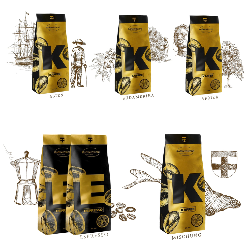 In unserem Kaffee-Probierpaket erhalten Sie eine Auswahl der beliebtesten Kaffeesorten aus der KAFFEER? STEREI Konstanz! Das Probierpaket beinhaltet folgende erlesenen Variet?ten: – 250g Brasil Yellow Bourbon – 250g Indien Monsooned Malabar – 250g Espresso Della Casa – 250g Espresso Mezzo – 250g Ethiopia Limu – 250g Konstanzer Goldb?hnchen Brasil Yellow BourbonEiner der langj?hrigen Bestseller der KAFFEER? STEREI Konstanz. Dieser Spezialit?tenkaffee aus Brasilien ist s??lich, blumig, leicht schokoladig und ist auch als Espresso ein h?chster Genuss. Indien Monsooned MalabarDie Aufbereitungsmethode dieses Kaffees ist einzigartig wie sein Geschmack. Dieser milder Arabica-Kaffee ?berzeugt durch seine feine, intensiv w?rzige zartbitterschokoladen Note und ein angenehmes Nussaroma von ger?steter Erdnuss. Espresso Della CasaHarmonisch und fein