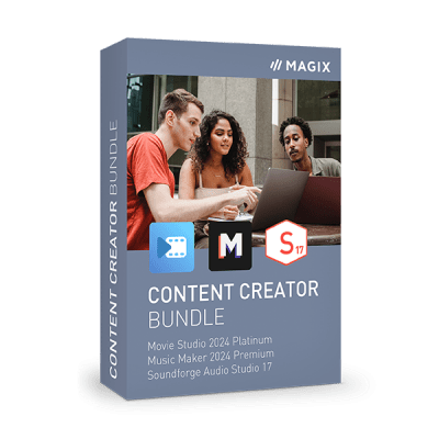 Kreative Musik- und Videobearbeitung. Einfach wie nie. MUSIC MAKER 2026 PREMIUM & MAGIX Video deluxe 2026 Plus & SOUND FORGE Audio Studio 17