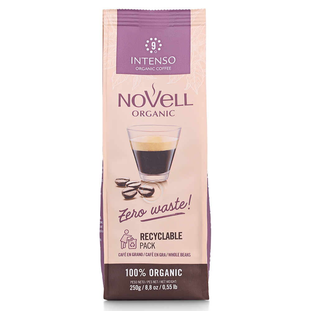 Novell Zero Waste Intenso Bio entf?hrt Kaffeeliebhaber auf eine aromatische Reise, die durch einen kraftvollen Blend aus feinsten Arabica- und Robusta-Bohnen definiert wird. Die dunkle R?stung nach italienischer Art verleiht diesem Kaffee eine beeindruckende Intensit?t und ein tiefgr?ndiges Aroma, das selbst anspruchsvollste Gaumen begeistern wird. Die Herkunft der sorgf?ltig ausgew?hlten Bohnen spiegelt sich in ihrer Anbauh?he von 200 bis 1000 Metern wider, was optimale Bedingungen f?r ein exquisites Geschmackserlebnis schafft. Das Aroma ist gepr?gt von feinen Noten von Schokolade und Vanille, die den Gaumen mit einer sinnlichen S??e umschmeicheln. Die Bio-Zertifizierung garantiert, dass nur die feinsten und reinen Kaffeebohnen in dieser Mischung verwendet werden. Dar?ber hinaus ist die Verpackung zu 100% kompostierbar. Seit der Gr?ndung 1958 ist Novell die Kaffeemarke aus Barcelona. Mit viel Tradition und Leidenschaft entstehen die unvergleichlichen Krea