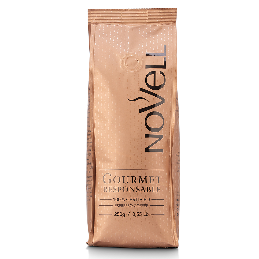 Der Gourmet Responsable ist ein echter Allrounder. Der ausbalancierte Kaffee setzt sich zu 80% aus feinen Arabicabohnen und zu 20% aus w?rzigen Robustas zusammen. Er bringt viel K?rperreichtum und eine moderate S?ure mit. Er schmeckt ausgepr?gt s?? und pr?sentiert ein facettenreiches Geschmacksbild, das von Vanille, Honig und Kakao in der Hauptnote bis zu Nuancen von Getreide und Karamell im Abgang reicht. Dank seiner mittelkr?ftigen R?stung ist der Gourmet Responsable f?r jede Zubereitungsform geeignet und l?dt zum Probieren und Experimentieren ein. Je nach gew?hlter Zubereitungsart lassen sich verschiedene Aspekte hervorheben, was den Kaffee nie langweilig werden l?sst. Seit der Gr?ndung 1958 ist Novell die Kaffeemarke aus Barcelona. Mit viel Tradition und Leidenschaft entstehen die unvergleichlichen Kreationen, die der Marke ihr hohes Ansehen auf der ganzen Welt verdankt. Zudem engagiert sich Novell f?r zertifizierten Kaffee und zeigt soziale Verantwo